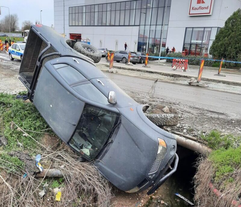 Militarii din cadrul ISU Dobrogea au fost solicitați să intervină, luni, pe bulevardul Aurel Vlaicu, în zona centrului comercial Vivo, acolo unde o mașină s-a răsturnat într-o groapă.