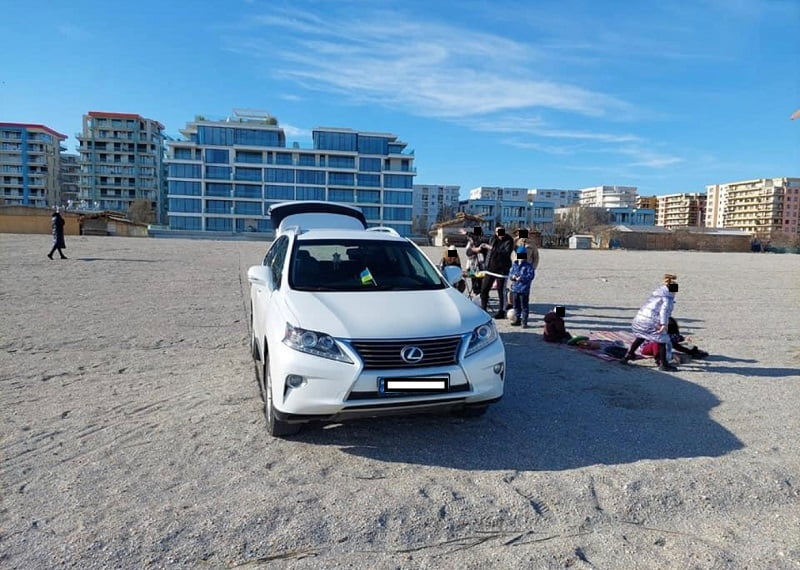 Vremea caldă din ultima perioadă parcă te invită la promenadă. Drept urmare, o familie de ucraineni și-a parcat mașina direct pe nisip în stațiunea Mamaia, iar lângă mașina parcată, aceștia au întins un cearșaf, au scos mese și scaune și au organizat un picnic în aer liber.