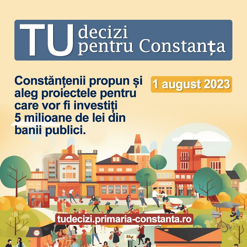 „Tu decizi pentru Constanța“, al doilea proces de bugetare participativă al municipiului, va începe de la 1 august 2023 cu perioada de depunere a proiectelor.