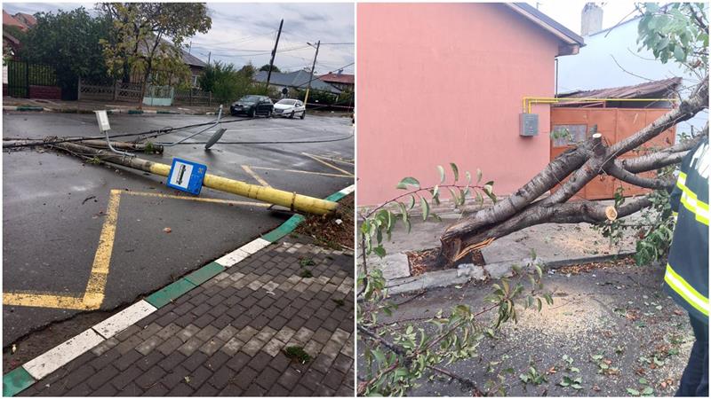 Astfel, pompierii au intervenit pentru degajarea unor copaci și stâlpi de electricitate căzuți pe carosabil, acoperișul și hornul unor case au fost avariate, dar și patru mașini.