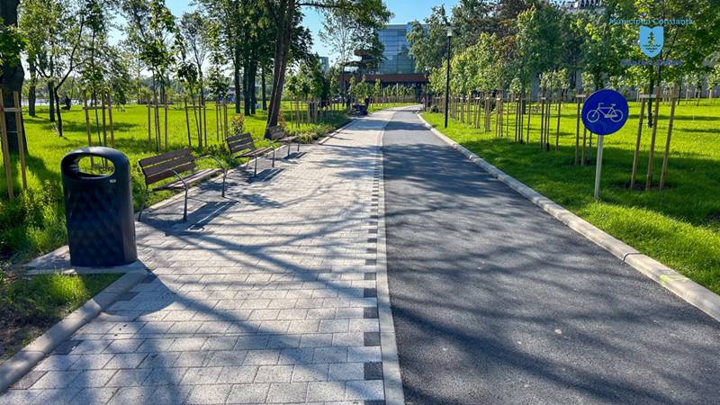 Sursa citată menționează că sunt în curs de amenajare traseele pietonale din parc, lucrările sunt aproape de finalizare în zona cuprinsă între City Mall și Țara Piticilor. Au fost montate borduri, iar aleile au fost finisate cu diferite pavaje dispuse într-o structură dinamică, s-a construit o nouă instalație de irigare a spațiilor verzi, au fost plantați copaci și s-a plantat gazon. În cadrul proiectului, au fost amenajate circuite rutiere educaționale pentru copii și a fost construită o pistă de alergare acoperită cu asfalt destinat traficului pietonal, colorat. De asemenea, au fost instalate elemente de mobilier urban.