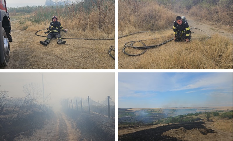 UPDATE. Pompierii au precizat că în urma incendiului au ars 450 de hectare de vegetaţie uscată şi mirişte, 20 de gospodării şi trei case dezafectate.