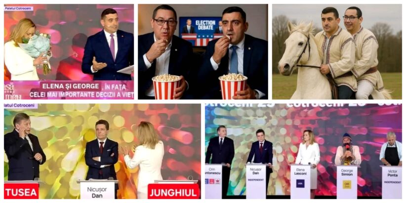 Absențele notabile ale candidaților George Simion (AUR) și Victor Ponta nu au trecut neobservate, iar internauții au ironizat rapid lipsa celor doi prin colaje comice în care apar fie urmărind relaxați dezbaterea, fie în ipostaze absurde generate de AI. Într-una dintre imaginile care a circulat intens, Ponta și George Simion sunt surprinși mâncând popcorn ca la cinema, în timp ce în altă imagine, cei doi “fug” pe un cal alb, într-o satiră inspirată din filme de acțiune.