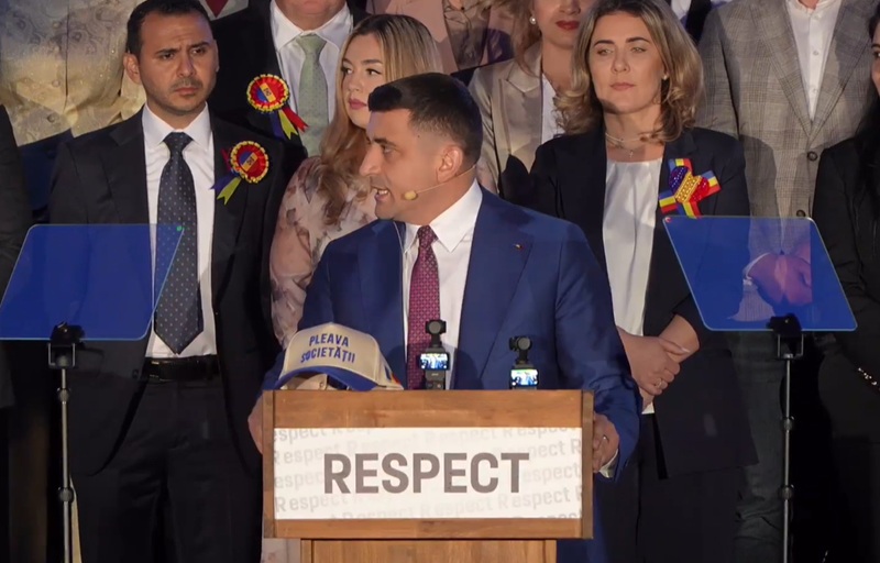 Candidatul AUR la alegerile prezidenţiale, George Simion, a declarat că este câştigătorul acestor alegeri şi că revendică victoria în numele poporului român. El a precizat că românii au decis că vor o schimbare reală, o schimbare în bine. Potrivit rezultatelor sondajelor realizate în ziua votului, contracandidatul său Nicuşor Dan are un avans de 8-10 procente înaintea lidetului AUR.